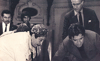 Roberto Matta junto al maestro estucador Ramón Domínguez y el director del MNBA Nemesio Antúnez, 1970. Colección Centro de Documentación Angélica Pérez Germain.