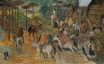 Mural de Julio Escámez Historia de la medicina y la farmacia en Chile realizado en la Farmaica Maluje de Concepción entre 1970-1972. Créditos fotográficos: Alexis Loyola.