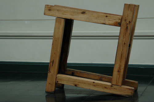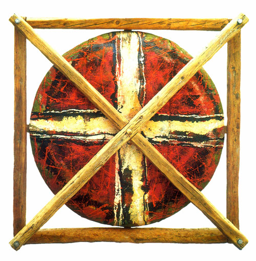Sin Título, 1991, madera, acrílico y arpillera, 240 x 240 cm