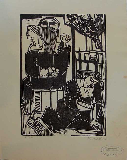 1960 Grabado Chileno presentado por la Escuela Nacional de Bellas Artes del Perú, Museo de Arte, Lima, Perú.