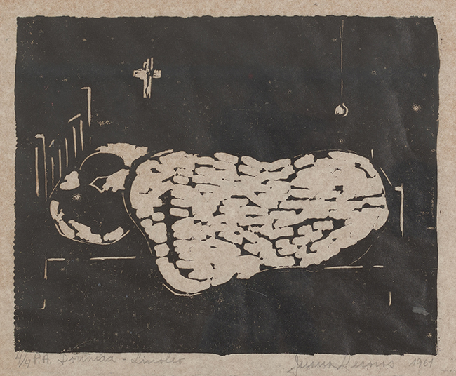 En La dormida (1961), grabado sobre linóleo de la colección del Museo Nacional de Bellas Artes, una mujer yace durmiendo boca abajo en una cama en medio de una habitación a oscuras. A la altura de la cabeza de la mujer, un crucifijo adorna la pared. Una versión fechada en 1960 de este grabado forma parte de la colección del Museum of Modern Art (MoMA) de Nueva York, en cuyos registros aparece con el título Sleeping Woman.