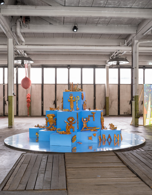 Técnica: Masa de harina, flores, pigmento alimentario, tabla de madera y superficie de PVC