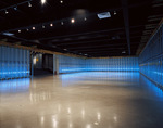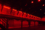 Site-specific: textos en neón, iluminación roja del espacio y audio