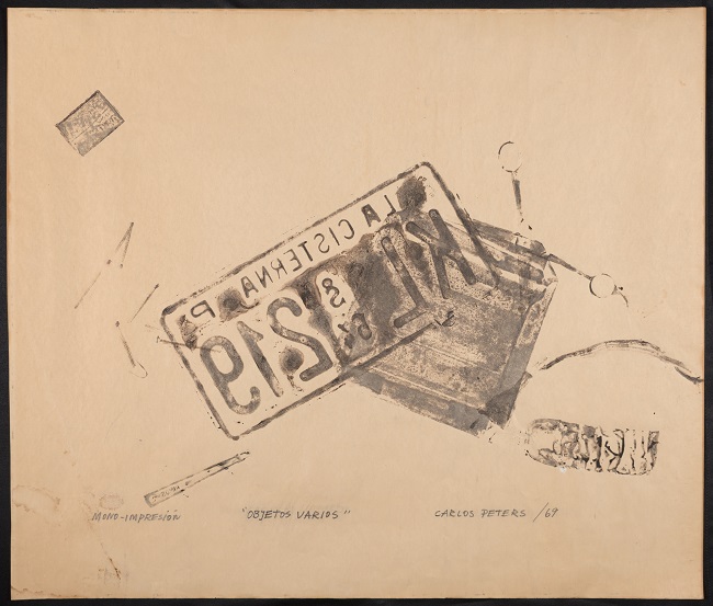 Carlos Peters Barrera nació el 31 de octubre de 1947 en Santiago de Chile. En una entrevista realizada por la revista Plan, mencionó haber participado de un club cultural durante sus años de estudiante donde, según relató, salían a dibujar y pintar "las viñas, las plazas, las ferias libres" (Peters en Bezerra, 1969), cuestión que habría contribuido a su interés por el arte. Hacia 1964 ingresó a la Escuela de Bellas Artes de la Universidad de Chile, donde se formó en pintura, escultura y grabado. Entre 1968 y 1973 se desempeñó como profesor ayudante de artistas como Rodolfo Opazo, Alberto Steinberg y Eduardo Martínez Bonati, quien tuvo a su cargo la cátedra de grabado entre 1955 y 1975.[1] El contacto de Peters con este último no es menor: formado en la Escuela de Bellas Artes y en instituciones norteamericanas, Martínez Bonati era extremadamente crítico de "la rigidez academicista en la enseñanza y en los procesos de creación artística", razón por la que habría buscado introducir nuevas perspectivas formativas que convirtieran al taller en un "espacio de reflexión crítica sobre la disciplina [del grabado]" (Baeza y Guerrero, 2021, p. 23).