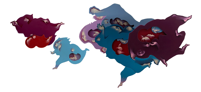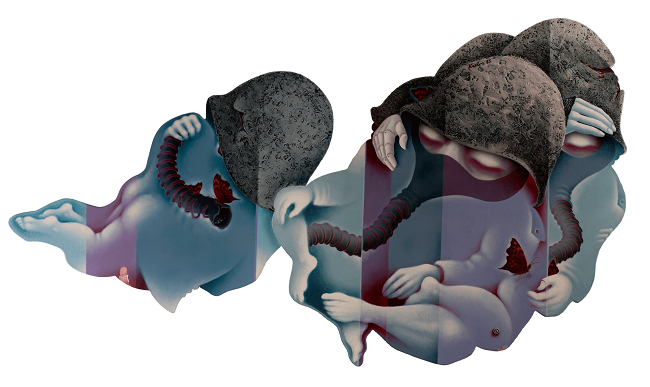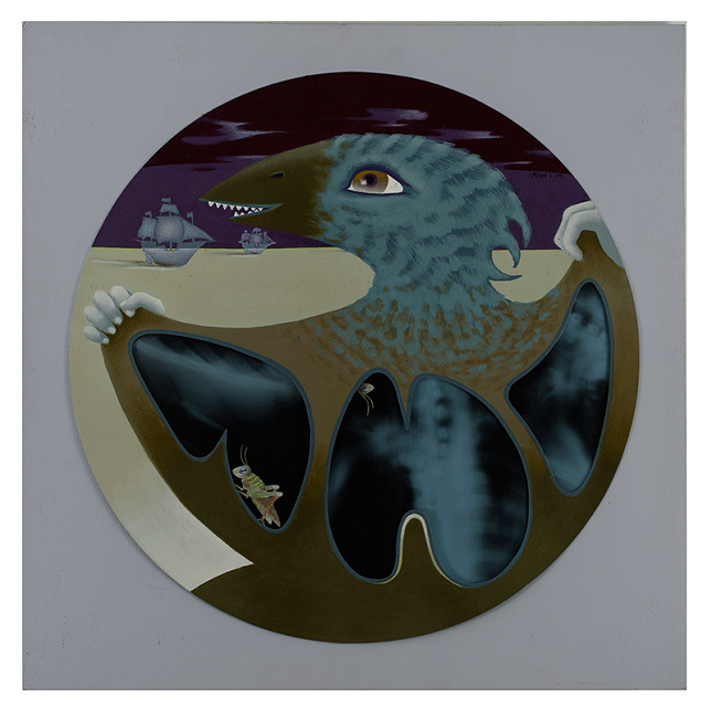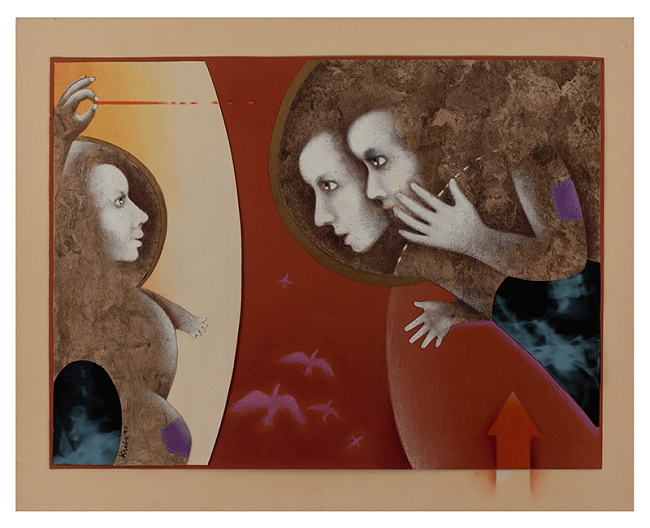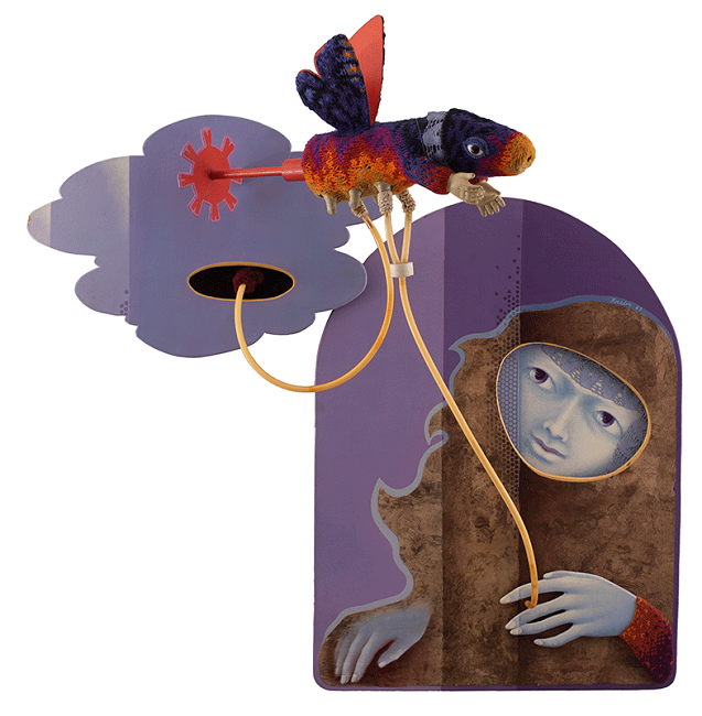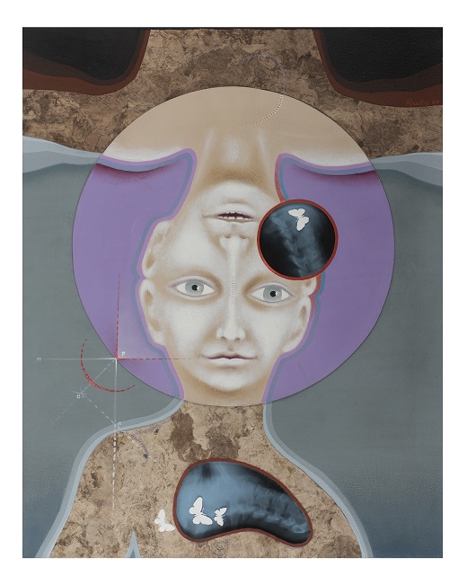 Acrílico, óleo, lápices de color, amate, hilo y radiografía sobre cartón