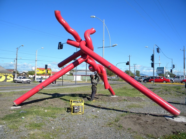 2007 Beca Fondart para la ejecución de la obra de acero Con el cuerpo en la tierra y el alma en el viento en Hualpén, Gran Concepción, Chile.