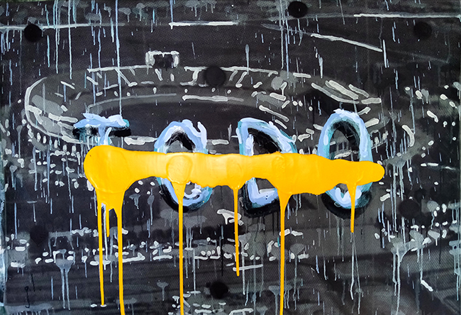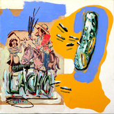 Óleo, esmalte sintético, grafito y collage sobre tela