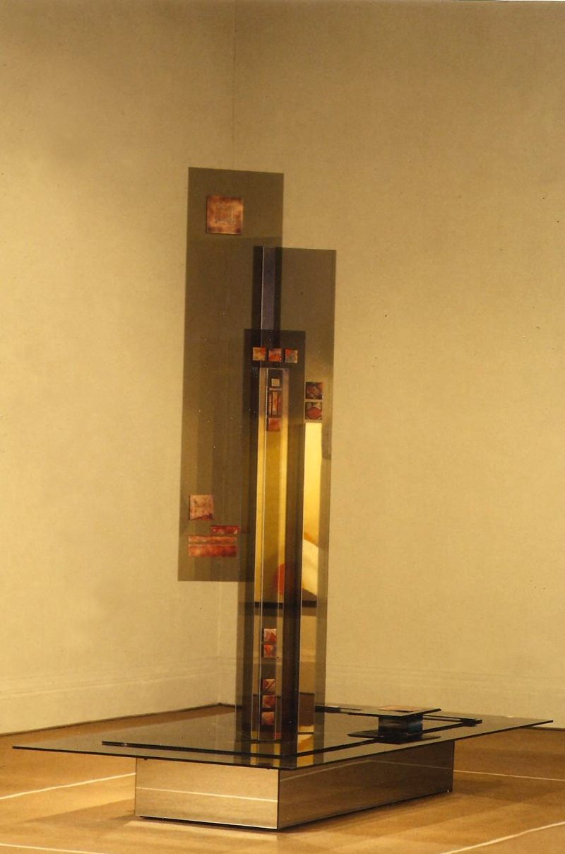 Técnica mixta con cristal, espejo y óxidos de alta fusión